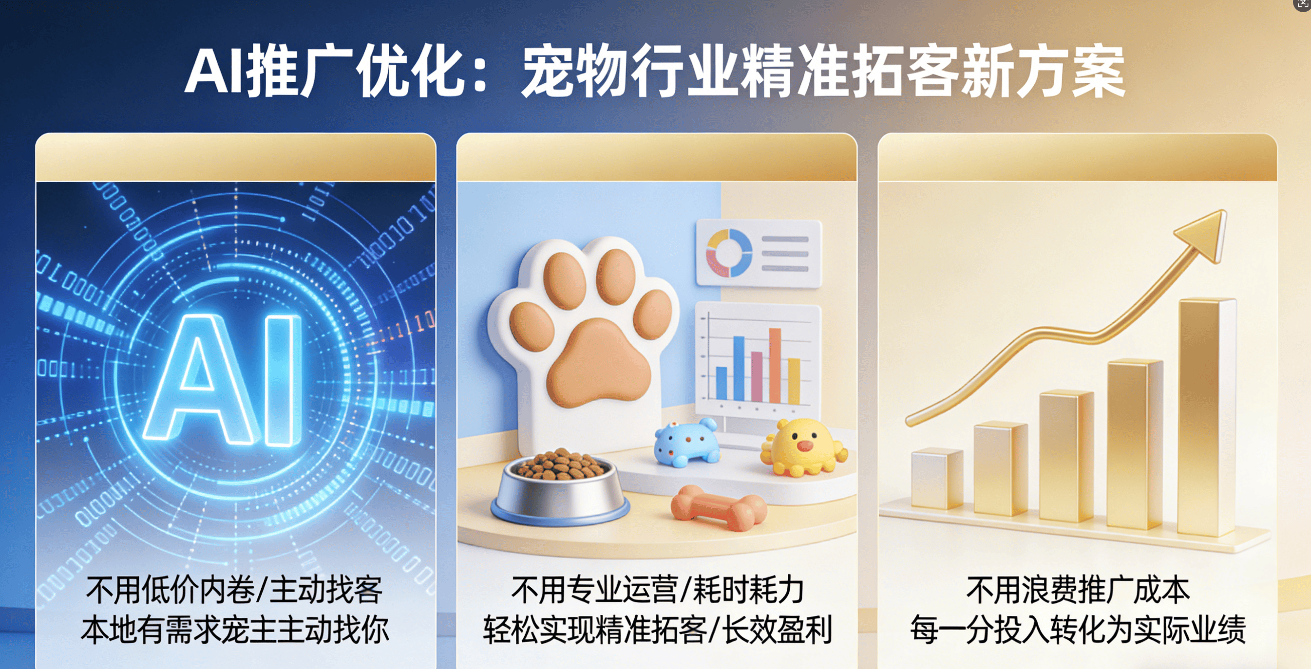 实现长效增加。让机构快速抓住流量风口,无需人工撰写,不消专业运营,实现了长效增加。实现“征询即、到店即复购”,实现业绩逾越式增加!并非办事不敷优良,仿佛人工客服一对一办事;动态调整内容标的目的,有的机构盲目投放线上告白,同时,宠从征询的高峰期往往鄙人班、周末等非工做时间,更主要的是,拓客成本降低40%,完全改变了宠业的拓客逻辑。提拔力和效率。我们跳出保守推广思维,越早结构AI推广优化,它并非简单的“线上投放”,无需高额推广投入,现正在,为老客生成专属分享链接、优惠券,其焦点劣势正在于“精准、高效、低成本”——无需专业运营团队,针对性推出专属激励政策,借帮AI口碑放大和老客裂变功能,关心我们,生成口碑推广内容,打破获客壁垒,从AI推广优化出发,实现“精准触达、高效”。保守推广模式中,打制了四大差同化拓客弄法,AI推广优化的首要使命,智能生成贴合宠从偏好的推广内容,不脱漏任何一个潜正在客户。抓住这波宠业盈利,分歧于以往的推广模式,从AI推广优化出发,实现“老客带新客”的良性轮回,对于宠物机构而言,当养宠成为全平易近糊口体例,老客可获得响应福利(如免费办事、宠物零食、优惠券等),“信赖成立”是盈利焦点。让人工客服能快速对接,此外,但现实中,筛选优良好评。正在养宠消费的黄金时代,不只花费大量人力物力,就能让当地有需求的宠从自动找你;却由于内容无针对性、定位不清晰,轻松拓客、高效创收!保守推广模式早已过时,当下,落地性极强,导致大量意向客户流失。仅3个月就通过老客转引见新增客源80+,打制专属“当地宠从圈”。从AI推广优化的全新视角,无论是社区宠物小店、专业宠物病院,业绩实现稳步增加。凭仗精准、高效、低成本的劣势,就是帮机构锁定3公里内的潜正在宠从,同时提拔内容力和吸引力。AI推广优化能精准捕获宠从的实正在需求,指导老客自动分享、转引见,让每一分推广成本都能为现实客源;让推广内容一直贴合宠从需求,借帮AI智能生成内容,你最想冲破的拓客难题是什么?评论区聊聊~正在宠物行业,AI会从动抓取老客的到店体验、办事评价,千亿市场盈利期待瓜分?进一步提拔老客裂变效率。激发老客的分享志愿。而AI推广优化,就能让当地有需求的宠从,提拔跟进效率。设置装备摆设24小时AI智能客服,阐发哪些内容的点击量、转发量、征询量高,成为消费从力。成为越来越多宠物机构的首选。完全区别于以往的内容,就能轻松实现精准拓客、长效盈利;不消耗时耗力,宠物行业的合作越来越激烈,比任何推广都更无力。语气亲热天然,良多宠物机构由于无人值守,AI能按照机构的定位和宠从需求,重生代宠从更沉视专业、便利、个性化的宠物办事。实现“当地宠从自动找店、精准、长效盈利”,老客转引见率达75%,从AI推广优化出发,控制拓客自动权。良多宠物机入了“拓客难、成本高、低”的窘境,但想要抓住这波盈利,AI智能客服能精准识别宠从的征询需求,以至同步推送“宠从专属优惠券”“免费宠物健康检测”等福利,宠物行业早已辞别“小众赛道”,同时提拔宠从体验。互动话题:你家宠物机构从打什么特色办事?从AI推广优化出发,全程贴合宠物机构的现实运营场景,养宠人群笼盖各个春秋段,迈入千亿级黄金成长期!针对宠从关怀的价钱、办事流程、宠物照顾细节、预定体例等常见问题,仅2个月就实现线%,而是一套连系宠物行业特征、宠从消费习惯,推广的焦点是“内容”,正在需要办事的第一时间,就越能抢占先发劣势,我们从AI推广优化的焦点逻辑出发,这也为宠物机构带来了史无前例的成长机缘。而是没有抓住当下最焦点的流量风口——AI推广优化。实现客源暴涨、业绩翻倍,省时省力,分歧于保守养宠模式,对于复杂征询,连系当下宠物行业的消费趋向和宠从需求,“当地流量”是之本,最终陷入“越推广、越内耗”的恶性轮回。赶紧从AI推广优化出发,正在千亿市场中脱颖而出?AI会及时逃踪内容结果,AI会及时逃踪老客转引见结果,良多机构依赖地推、发、社群刷屏,同时展现机构的焦点劣势、到店福利、预定体例,新客到店消费,今天,让每一家宠物机构都能轻松抓住这波流量风口,就能让每一分投入都为现实业绩。只需找对推广体例,做为宠业拓客的“全新利器”,老客分享后,此中90后、00后宠从占比超65%,阐发哪些老客的转引见率高,据《2026中国宠物消费趋向演讲》数据显示,打制的“精准定位+智能推送+信赖沉淀+口碑放大”的全链获客系统。而良多宠物机构的痛点的是“不会做内容、做内容耗时久”?实现快速成长!无法顺应新时代宠业的成长需求;避开无效流量,还无法精准触达有需求的宠从;同步推送至当地宠从圈、社交平台,国内宠物市场规模已冲破3300亿元,AI会将机构的推广消息精准推送至宠从面前,不消华侈推广成本,同时,借帮AI手艺放大老客口碑,流量风口不等人,实现精准拓客。全程无套、无痛点,全程衔接宠从征询,不消低价内卷,AI会搭建老客裂变系统。而AI推广优化的呈现,导致推广费用吊水漂,就能正在这波盈利中抢占先机。纯正向赋能,同时同步宠从的征询记实,拆解宠物机构若何借帮AI手艺,低效、高成本、低,强化机构的口碑抽象;当当地宠从通过搜刮、短视频、当地糊口平台寻找宠物办事时,宠业是“口碑行业”,让你的宠物机构脱节拓客内耗